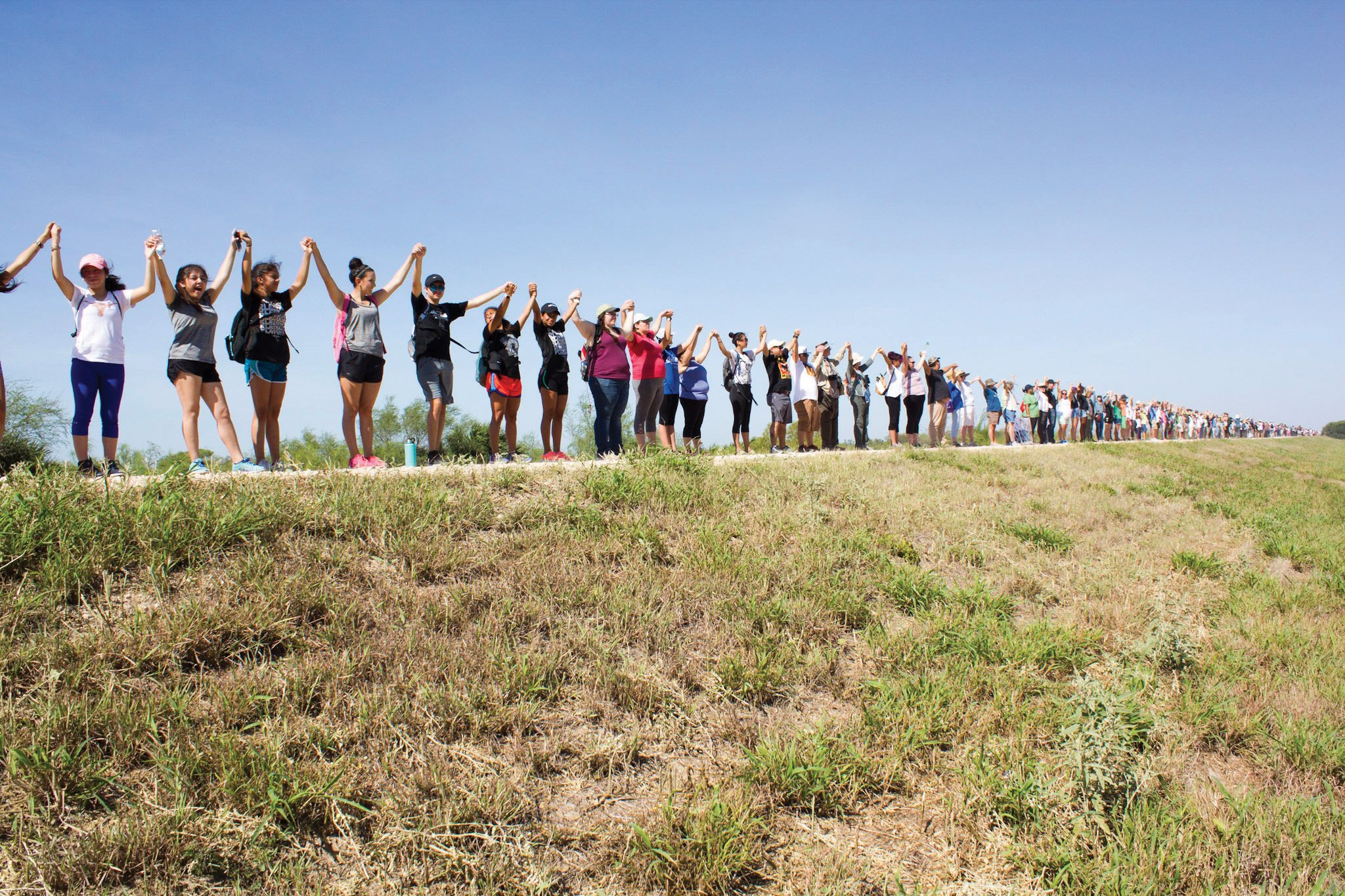 The next day, the people brought their protest to the Santa Ana National Wildlife Refuge. News had leaked that Santa Ana, set aside as habitat for the migratory birds that fill South Texas’ skies every autumn and spring and for the endangered ocelots that move silently through a wildlife corridor alongside the Rio Grande, was slated for the first new stretch of wall. The Trump administration would ultimately condemn the property of hundreds of landowners along the planned wall’s path, but those court proceedings would take time. The wildlife refuge was federally owned, so the conversion of the levee that ran between the visitors center and the trails could start right away. Those who cared about the refuge joined hands, forming a line nearly a mile long on the levee and denouncing its planned replacement with a barrier that would devastate the refuge.