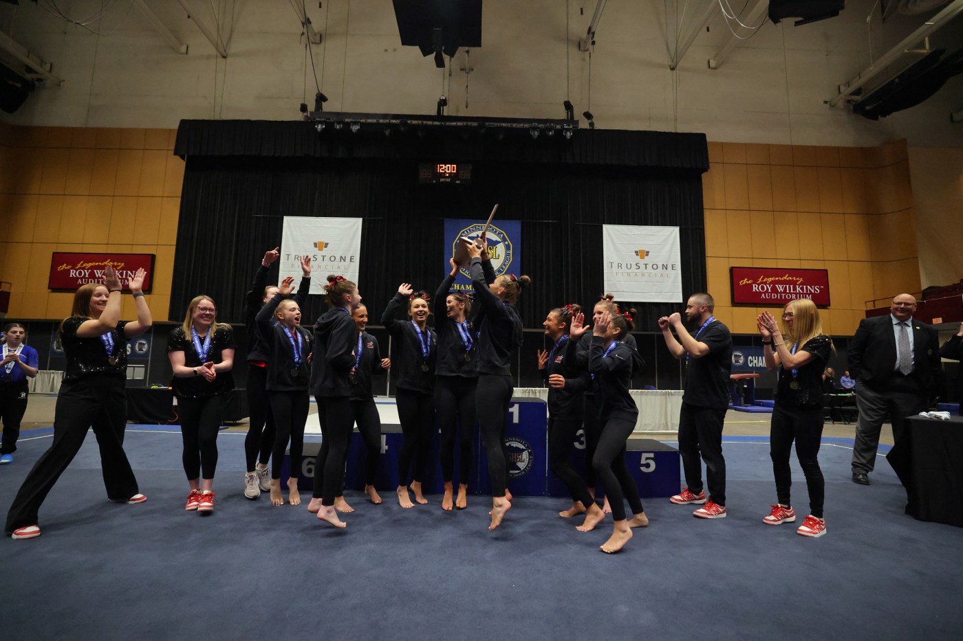 Monticello completed its title quest in emphatic fashion on Friday afternoon at Roy Wilkins Auditorium in St. Paul, winning with a score of 148.725 — clearing second-place Owatonna by 4.225 points. Hopkins finished third, while East Ridge was fourth and White Bear Lake was eighth.