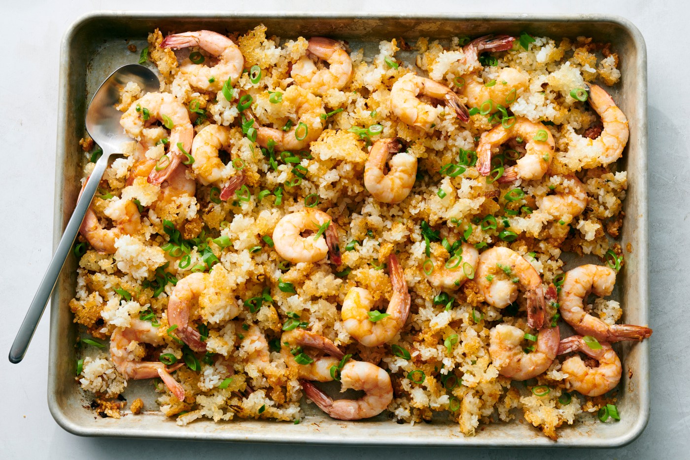 Sheet-Pan Scallion Shrimp With Crispy Rice