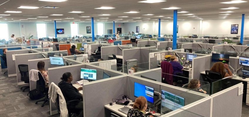 FILE – A worker at a Medicaid call center reviews information regarding eligibility determinations on Wednesday Aug. 16, 2023 in Jefferson City, Mo. (AP Photo/David A. Lieb, File)