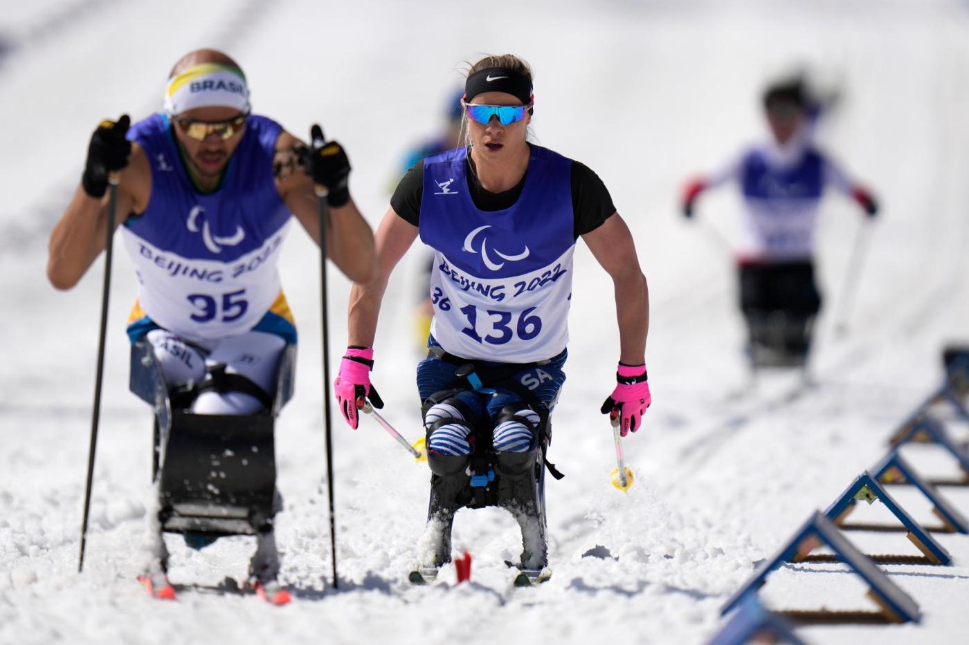 In the skiing sports — Para alpine skiing, Para biathlon, Para cross-country skiing — athletes compete in one of three categories: standing, sitting (on a sit-ski or monoski) or vision impaired (who race following a guide connected via radio).
