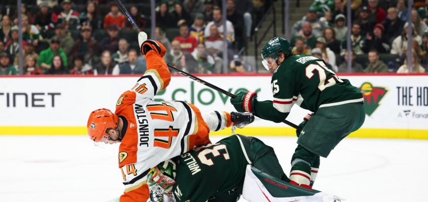 In stifling the normally high-scoring Ducks, Minnesota got 28 saves from Jesper Wallstedt — one half of what is looking more and more like a true goalie tandem — as the younger of the Wild’s two Swedish goalies improved to 4-0-2 as a starter. It was the second shutout of the season for Wallstedt, and the third of his career.