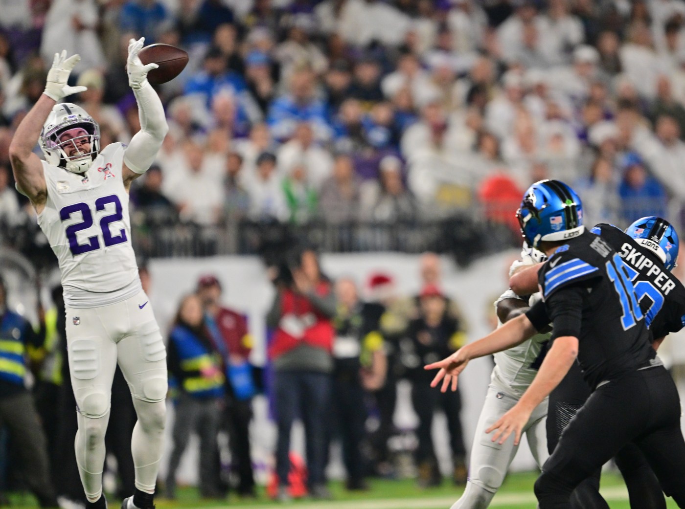 Just when it looked like the Lions might claw their way back into the game, the Vikings forced another turnover, this time with Van Ginkel and edge rusher Dallas Turner teaming up for a strip sack before defensive tackle Jalen Redmond recovered the fumble.