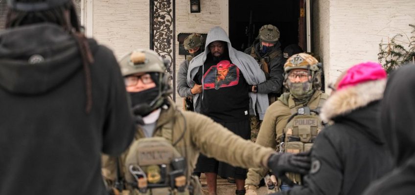 United States Attorney Markenzy Lapointe speaks to the media about a network of nursing school operators, centered in South Florida, who allowed students to buy diplomas without the proper training, during a press conference at the U.S. Attorney’s Office for the Southern District of Florida in Downtown Miami, Florida, on Wednesday, Jan. 25, 2023. Representatives from FBI Miami and Department of Health and Human Services Office of Inspector General (HHS-OIG), Miami Regional Office are shown standing behind him. (D.A. Varela/Miami Herald/TNS)