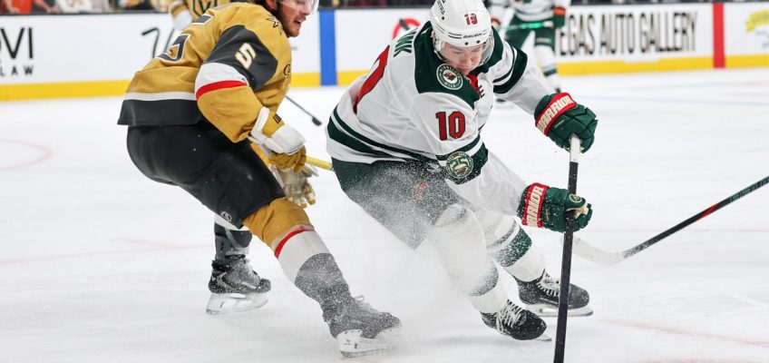 Minnesota had the only power play of the opening 20 minutes, and needed about one more second to get the game’s first goal, as Matt Boldy poked a rebound past the Knights’ goalie just an instant after the first period clock expired.