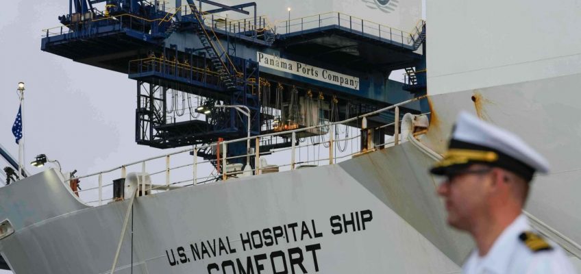 THE FACTS: The USNS Mercy and USNS Comfort are at a shipyard in Mobile, Alabama, according to social media posts from the shipyard showing the pair of white hospital ships alongside each other in late January. Publicly available ship tracking data show both ships are still in the shipyard.