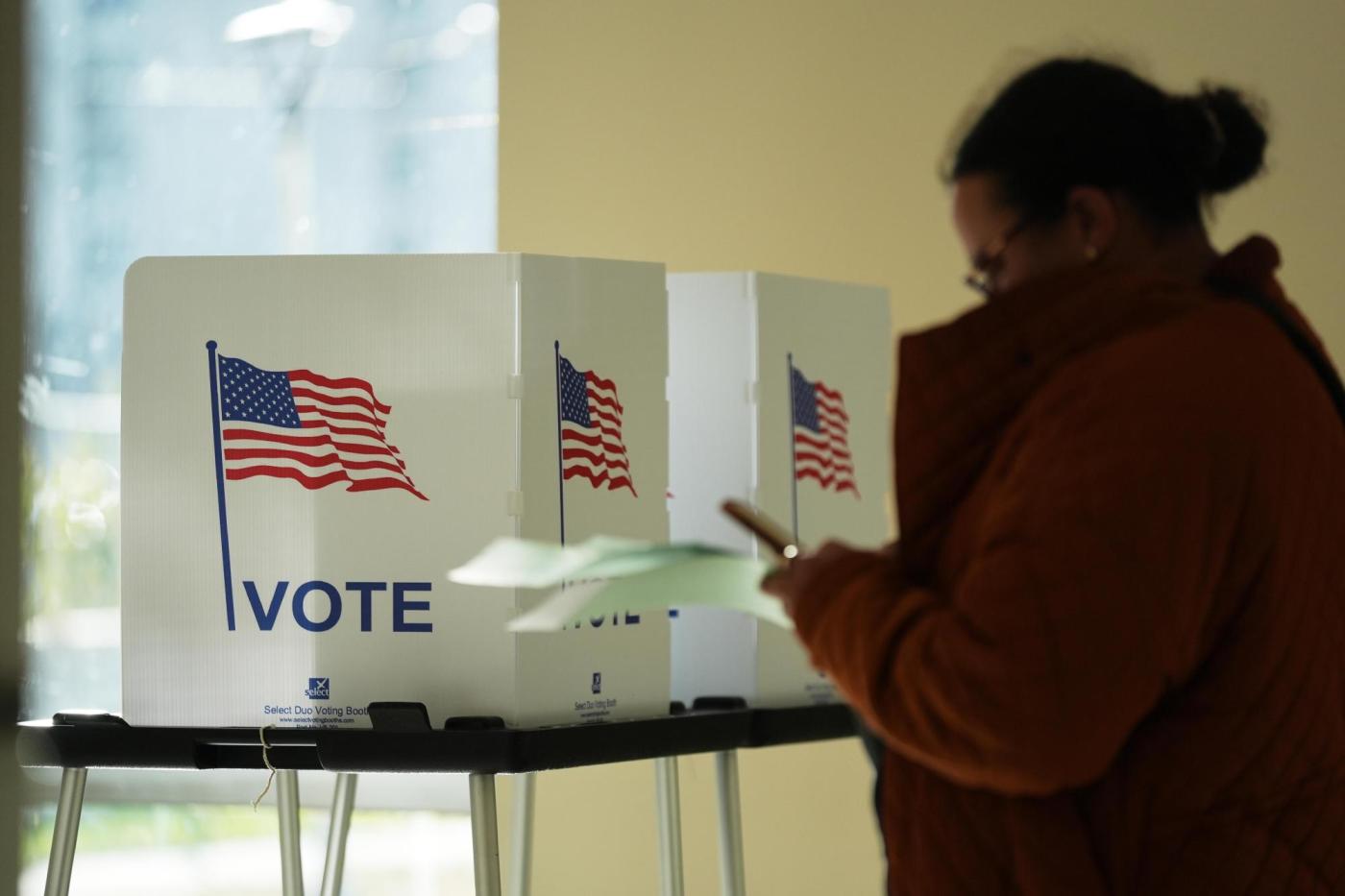 Jenny Poole pushes a shopping cart at Kohl’s on Black Friday, Jenny has shopped at this Kohls on Black Friday every year for the last 10 years, Friday, Nov. 28, 2025, in Woodstock, Ga. (AP Photo/Megan Varner)