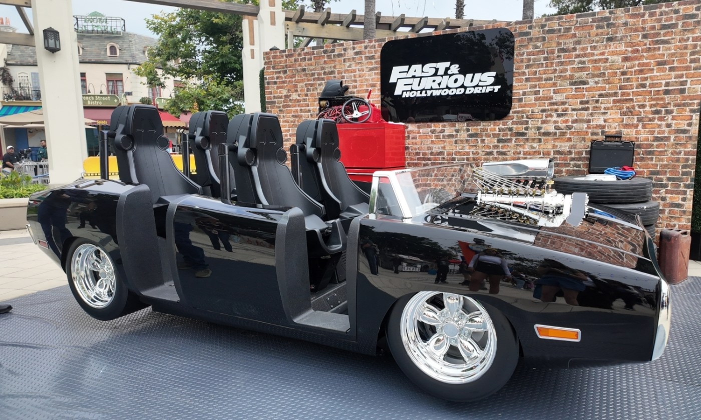 Riders will drift and spin in a replica of Dominic Toretto’s 1970 Dodge Charger as they ride in the new launch coaster coming to the Upper Lot of the Hollywood theme park.