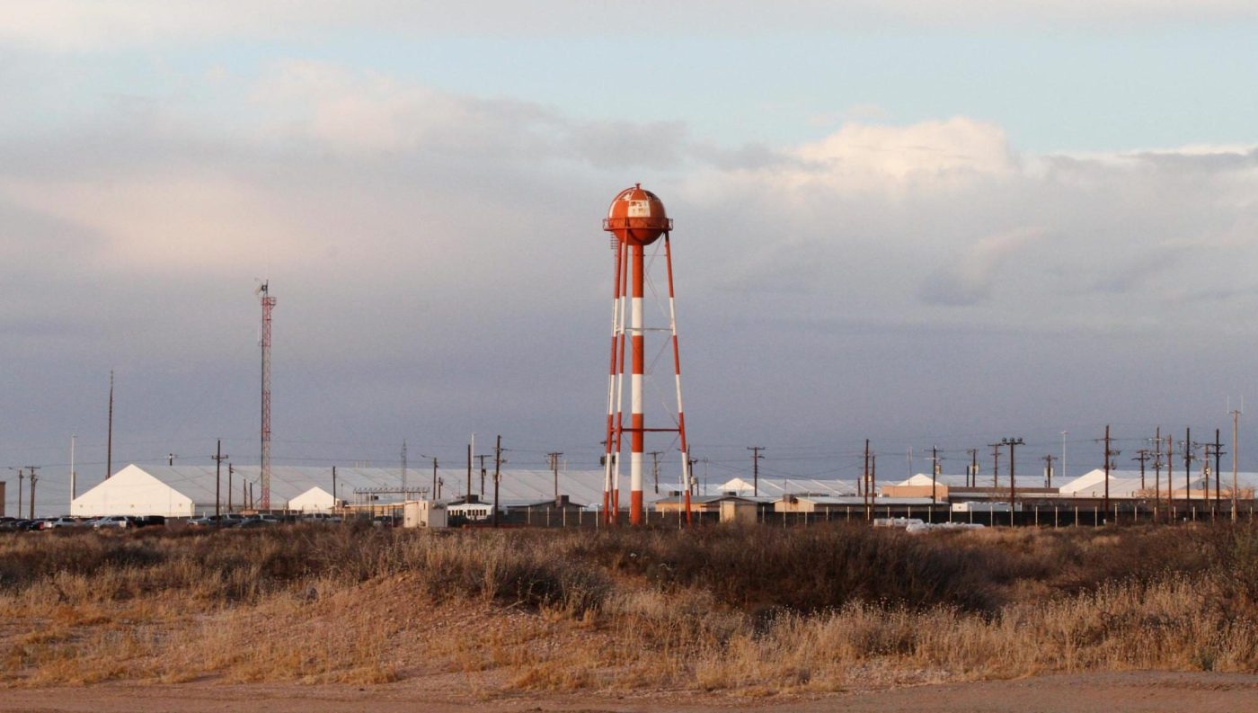 Camp East Montana looks like a pop up village, with six long tents along a stretch of the Chihuahuan Desert outside El Paso at the U.S. Army base Fort Bliss, once the site of an internment camp for Japanese Americans during World War II. Inside the hastily constructed camp, a series of communal living pods shelter thousands of immigrants in color-coded uniforms and Croc-style shoes.